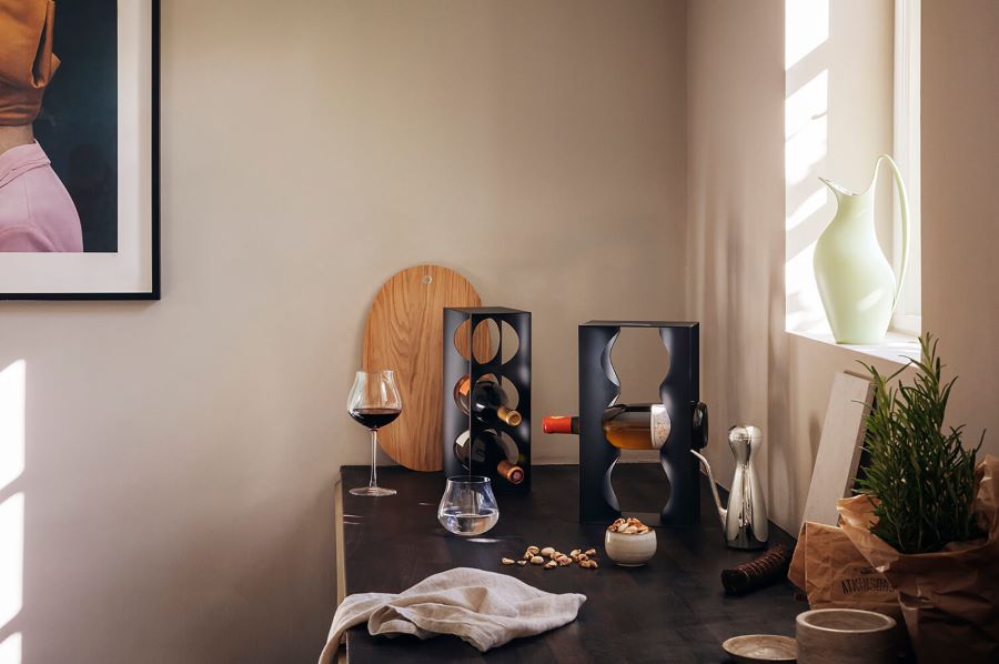 Vinstativet kan plasseres både vertikalt og horisontalt, og passer perfekt på kjøkkenbenken eller i spisestuen.