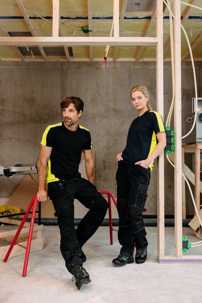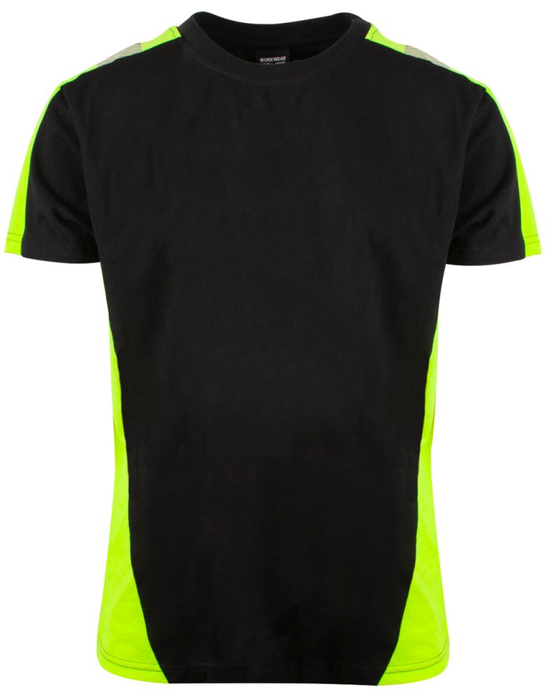Med et klassisk snitt og safetygule kontrastfelt i sidene samt over skuldrene og ermer, gir denne t-skjorten høy synlighet.
