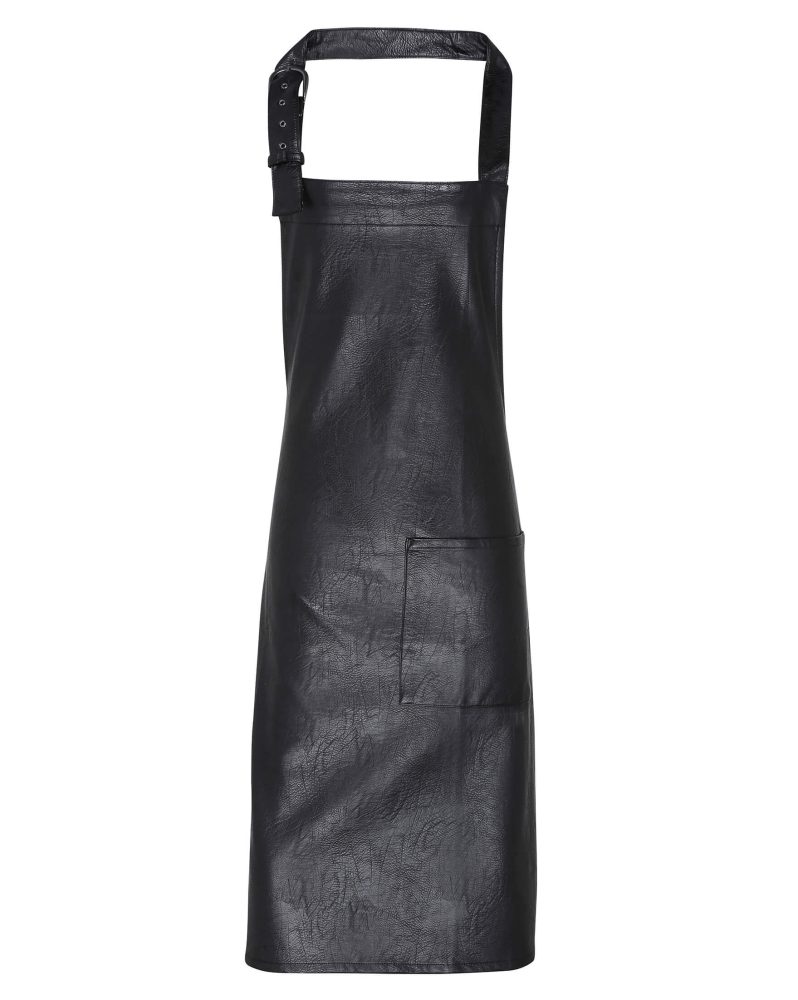 Faux Leather Bib Apron gir luksusfølelse med imitert skinn og justerbar beltespenne.