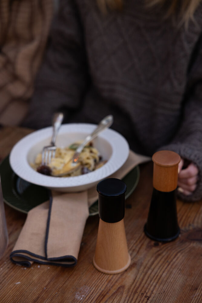 og laget i sertifisert bøk med keramisk kvernverk for jevn maling.