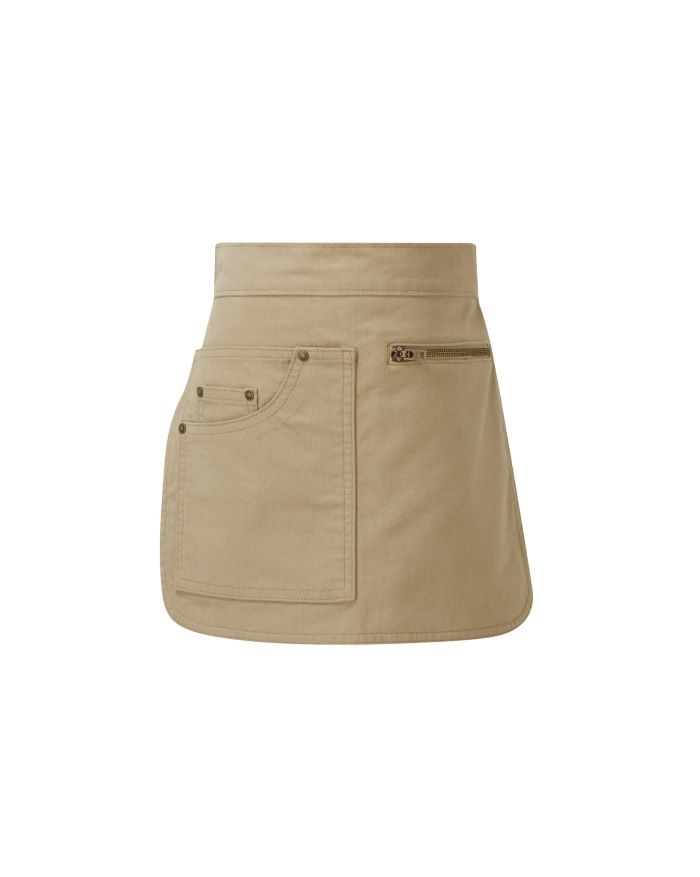 Dette trendy hofteforkleet har en jeanslomme med plass til nettbrett og en glidelåslomme for enkel tilgang.
