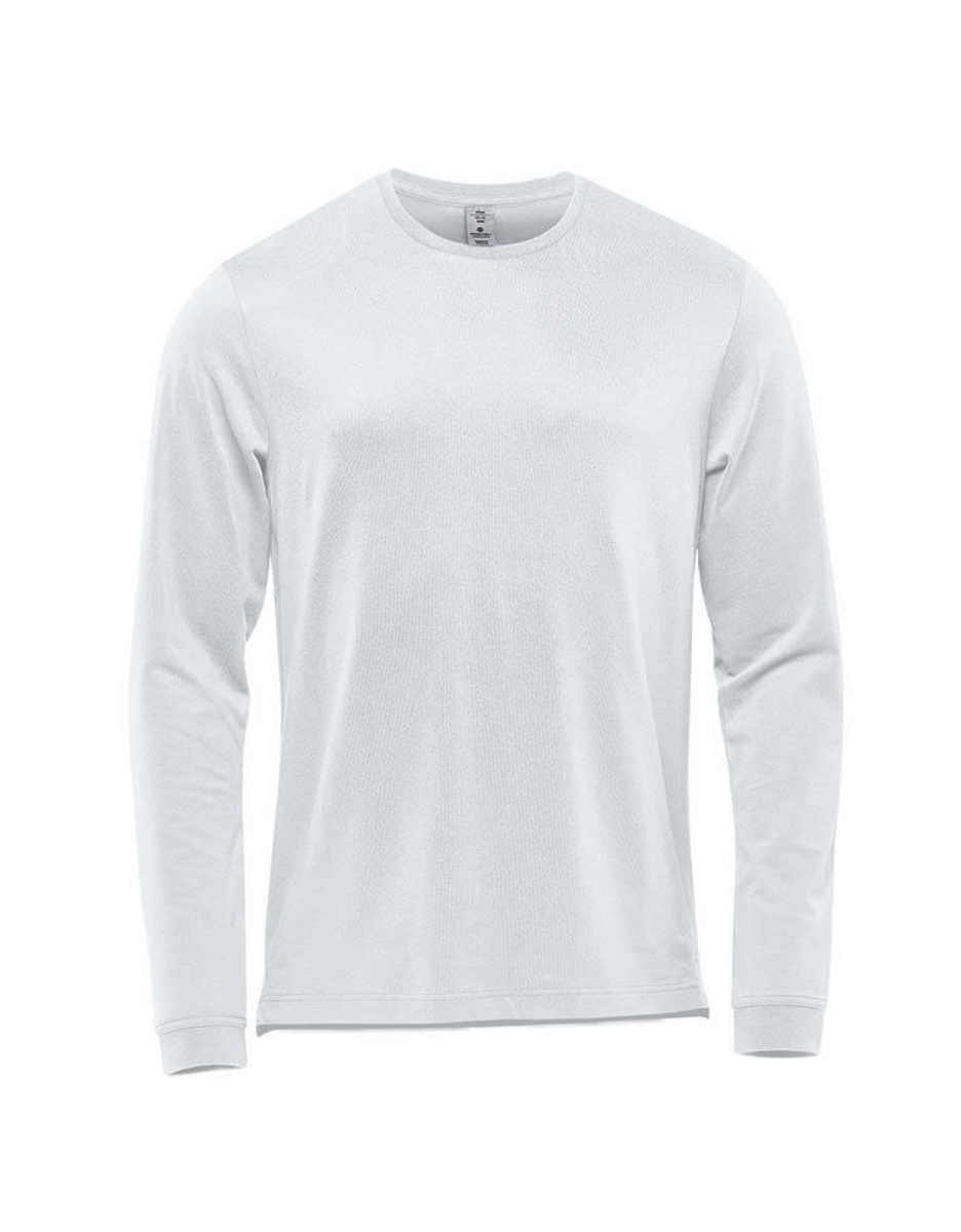 Høy ytelse langarmet T-skjorte i økologisk bomull og resirkulert polyester.