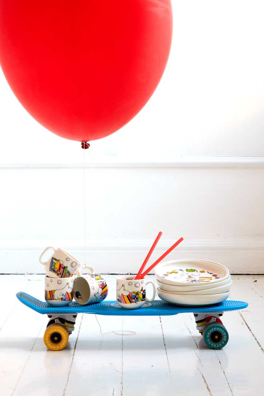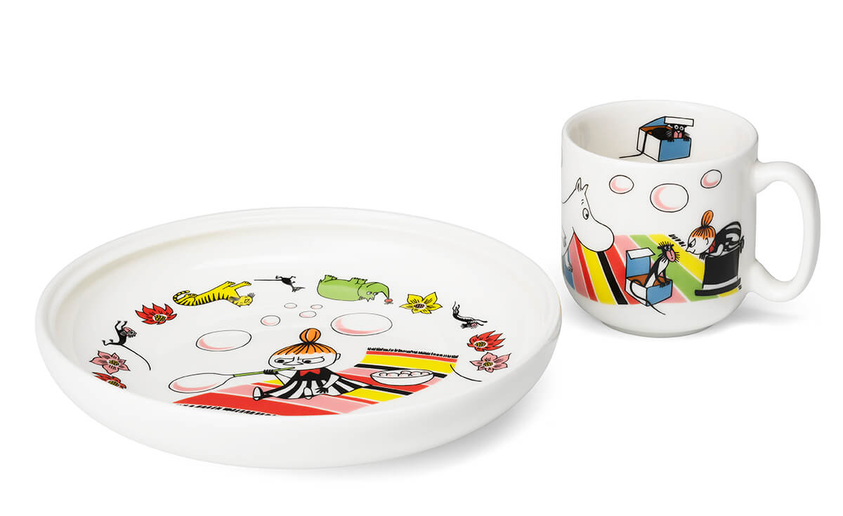 Begge settene har fargerike motiv fra Mummidalen, og er designet for å gjøre spisingen til en lek.