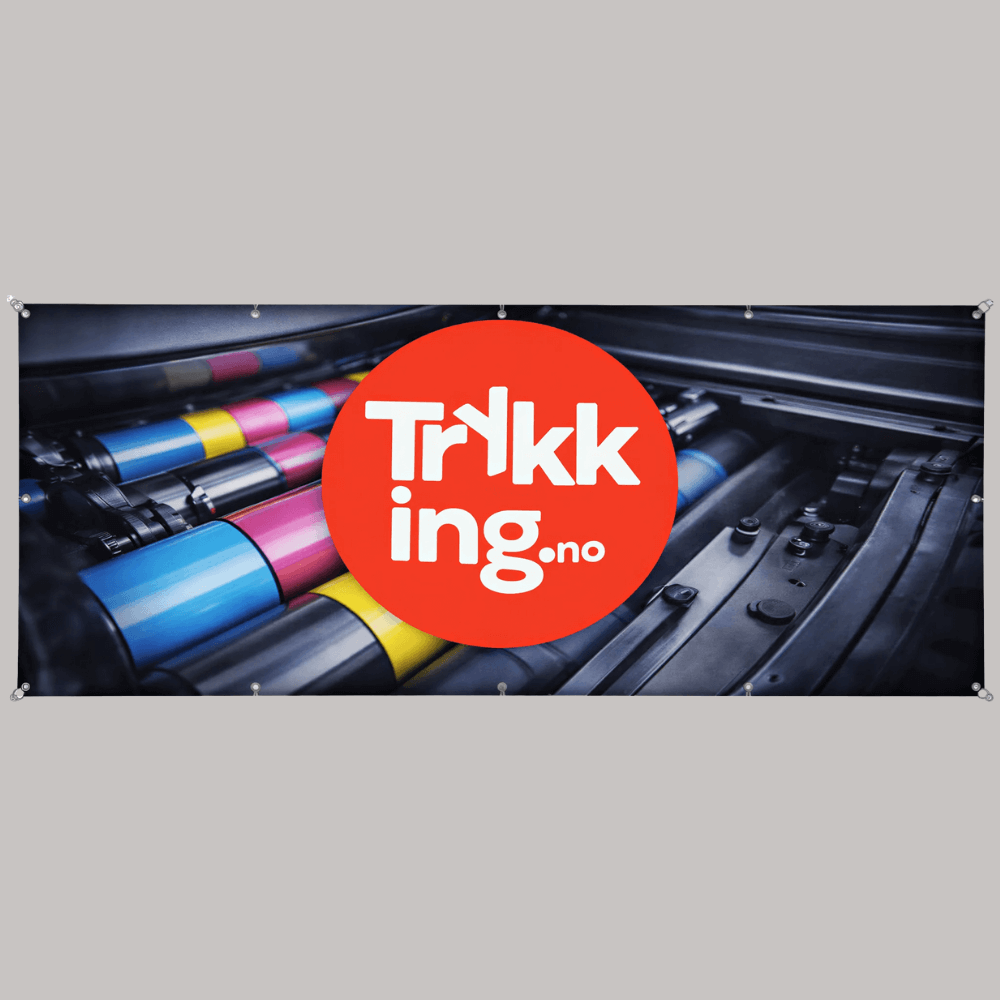 Vi trykker med moderne UV-printere som gir skarpe detaljer, sterke farger og høy slitestyrke. Trykket tåler både sol og regn. Dermed får du et banner som holder seg pent over tid, også utendørs.