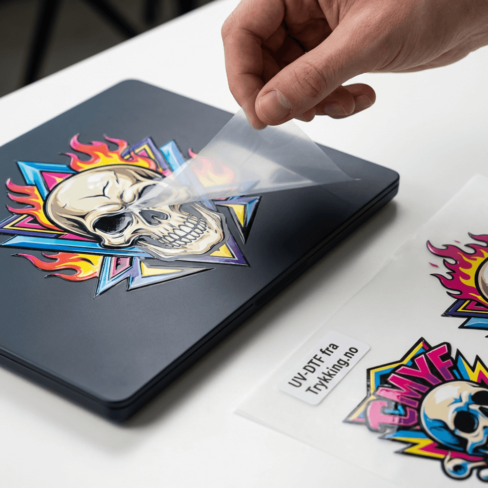 Vi produserer UV-DTF hos Trykking.no med moderne utstyr og rask levering.